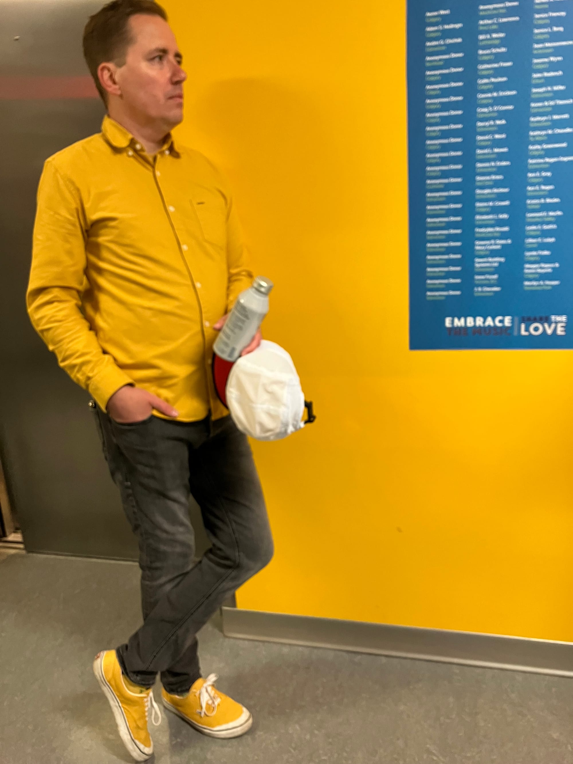 - Accidentally matching my mustard yellow shirt to walls of CKUA radio